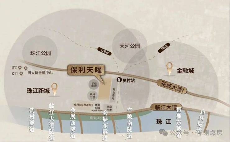 珠城-金融城(东西向):项目北侧花城大道规划东扩南移,项目南侧临江大道隧道已通车