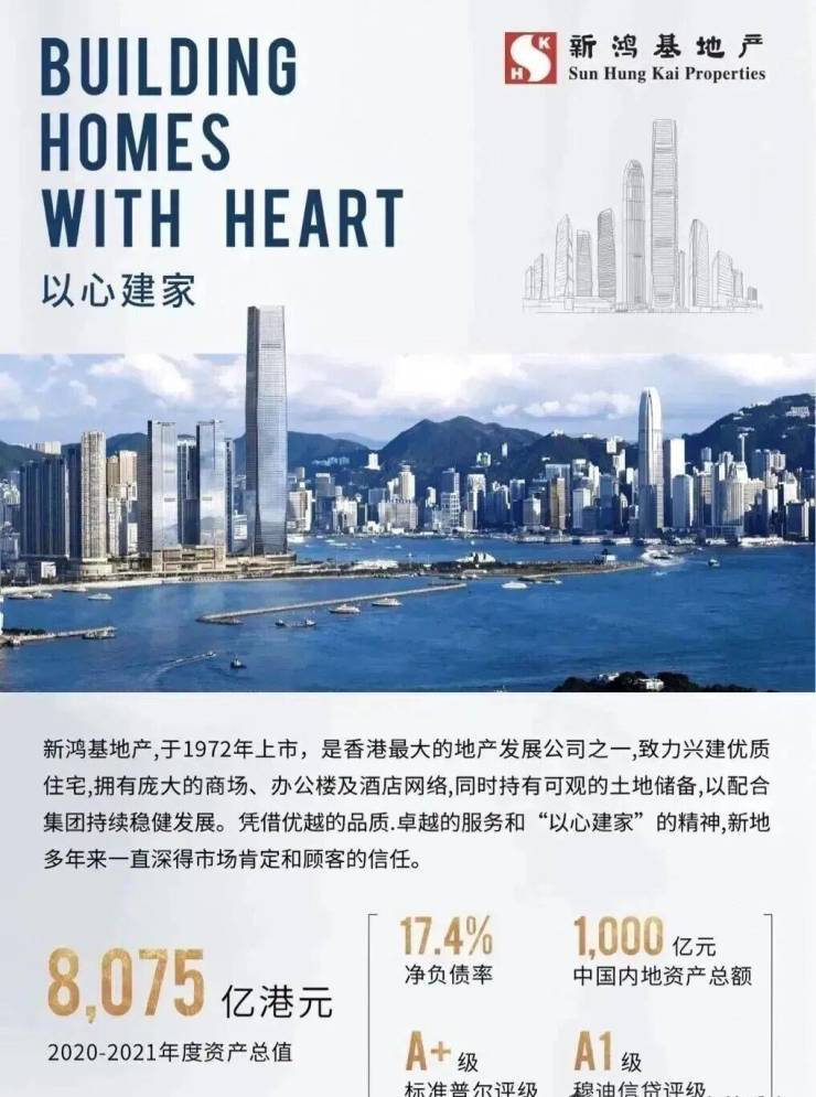 新鸿基只做豪宅和地标两种产品,旗下物业涨幅最高达300%,坐享升值最强保证,多个项目创全球/当地最高价,如香港天玺均价100万/㎡、上海凯旋门均价25万/m²,广州天河峻林超16万/m²