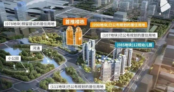 住宅项目分南北组团开发,整体预计约1300套单元。距离广州南站约400米,约5分钟步行距离,有效减少轨道列车及周边车辆干扰。首推北组团B1#、B2#楼栋。B1#和B2#均为两梯四户设计,高24-25层,总货量约186套。