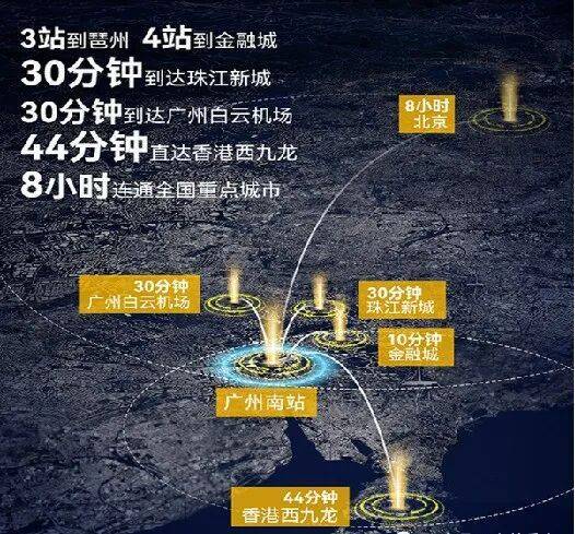 南站连续多年蝉联全国火车站年客流量第一,发客量达1.88亿人次,享12条轨道交通,4高铁+4城际+4地铁无缝链接大湾区及国内9省,中转接驳东南亚10国,尤其通过广深港高铁可47分钟直达香港西九龙ICC,实现互联互通。
