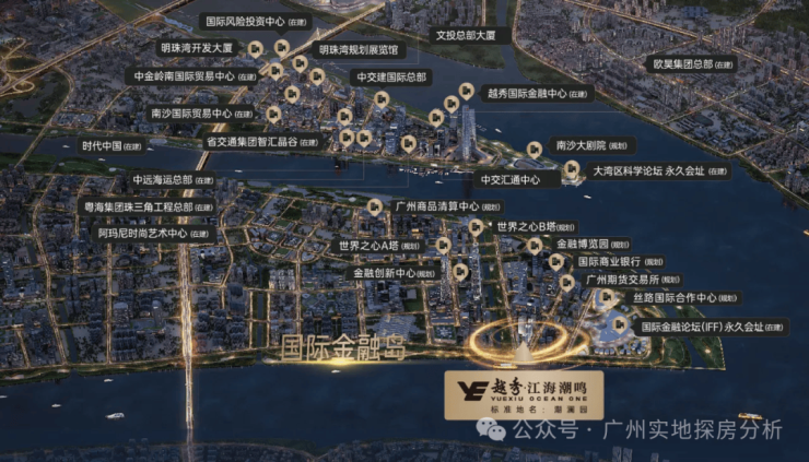 项目位于广州南沙横沥岛南岸,紧邻国际金融论坛IFF永久会址仅420米的直线距离,东望明珠湾大桥,西邻滨江绿化带及凤凰大桥。