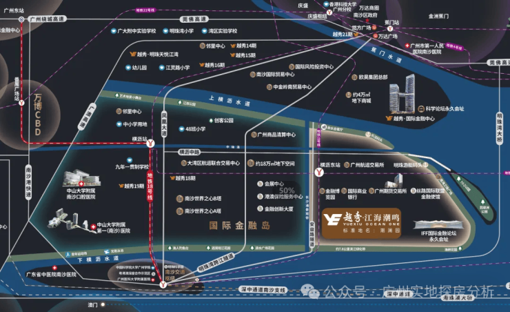 项目周边有中大附属第一南沙医院和中大附属口腔医院。