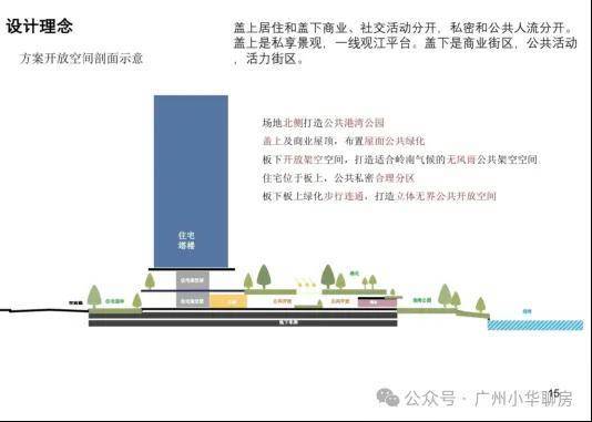 借鉴新加坡设计理念,打造罕有滨水共融综合体,项目采用抬高式盖板创新设计,连接盖上住宅、架空园林、盖下滨水商业及亲水港湾步道,打造广州罕有滨水共融综合体,犹如珠江新城的广粤天地一般。