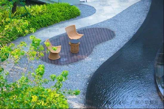 流水、瀑布等景观的营造,消弭了珠江与建筑的边界。让人步入小区中,也仿佛能听到珠江水的流动,瞬间忘却外部的喧嚣,投入自然的怀抱。