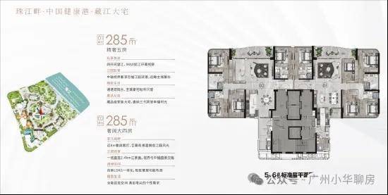 户型:建面约233-285㎡四至五房,东向/东南向一线望江,极致3.4-3.6m层高