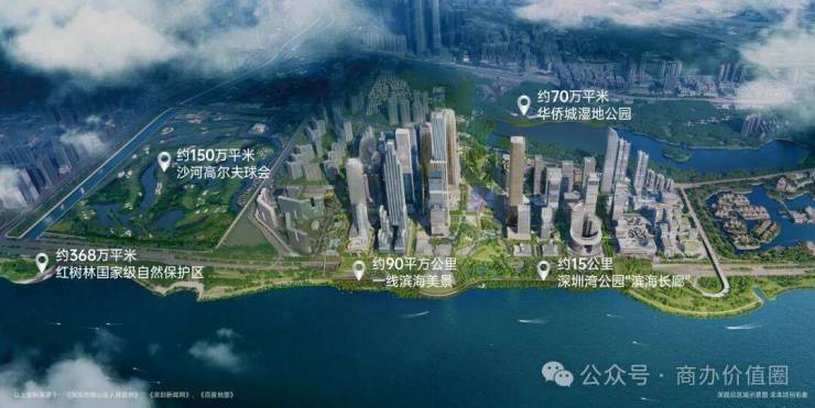雄踞深圳地理几何中心,串联深圳,辐射湾区,面向世界;在约1.17k㎡的土地内,固定资产投资总额约3000亿,单位面积投资密度约10倍于前海核心区,旨在成为具备全球影响力的国际CBD。
