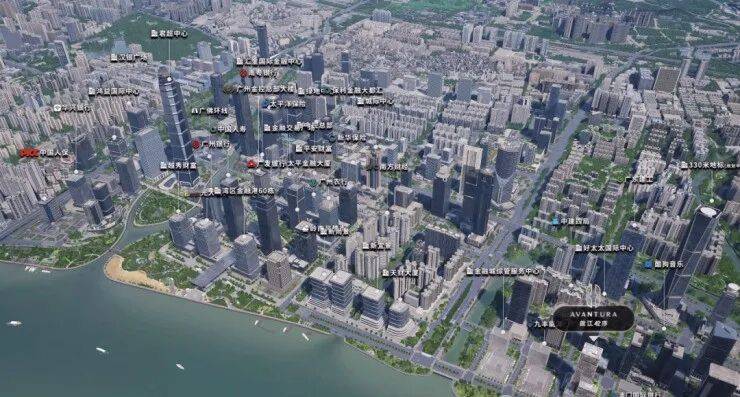 向南对望从琶洲之眼到小蛮腰的城市天际线,向西收藏金融城-珠江新城地标建筑群