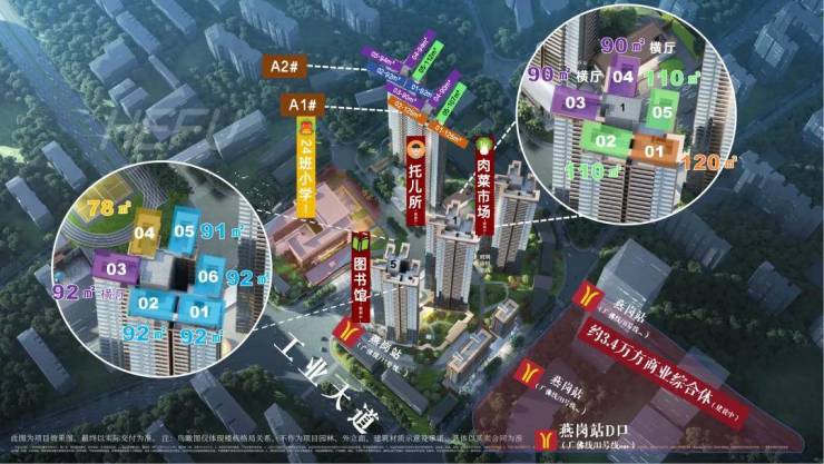 地铁:双地铁上盖,线路四通八达,项目直线50m就是燕岗地铁站。第一广佛线,已开通,可以链接佛山新城、千灯湖、荔湾芳村等区域。第二就是11号线,今年开通,广州首条环线,换乘之王,可以链接全城。