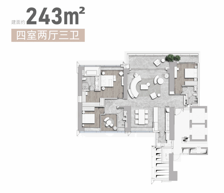 开了三个样板房,243㎡的户型最好,层高3.3米、243㎡的户型,阳台长11.5米!