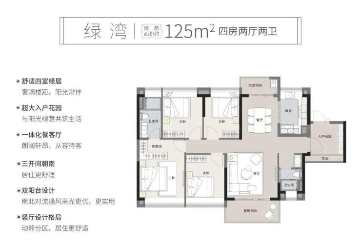 至于125㎡四房户型,则是改善首选,实现一步到位,节省换房成本。