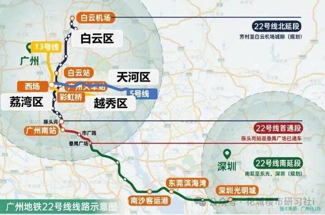 同时,项目距离2 号线会江站仅约 1.2 公里,3 站直达海珠,并能贯通越秀、白云。未来22 号线北延段将直达白鹅潭,途经广州火车站、彩虹桥,可换乘 8 条地铁线路,覆盖广州核心区域。