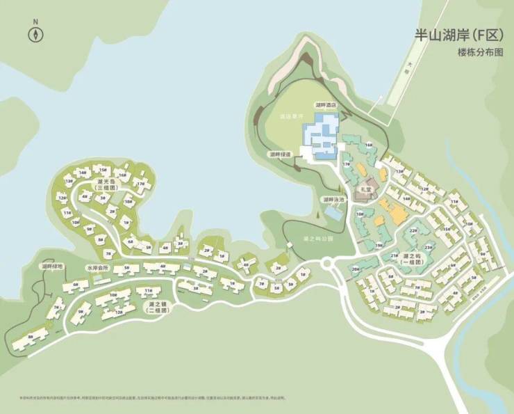 👉半山湖岸/湖畔小镇(F区)楼栋分布图