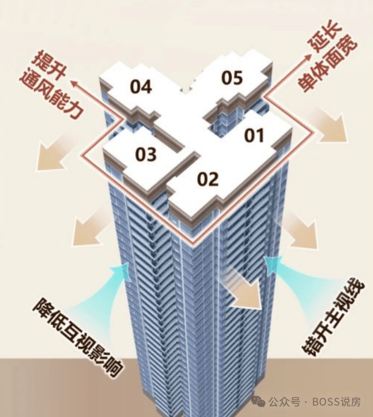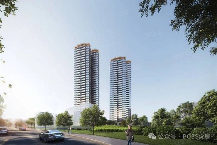 项目地块较小,由2栋30-33层的塔楼组成,楼栋通过扭转一定的角度,实现了户户朝南,实现约80%梯腿望江