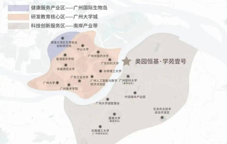 中山大学、华南理工大学等12所全国知名高校为邻,与生物岛、国际科技创新城、思科智慧城构成大湾区智库
