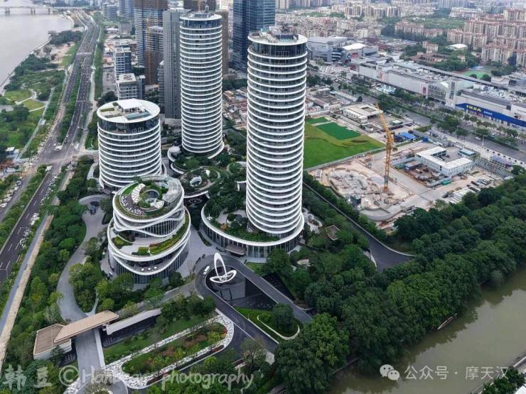 建筑外形圆弧造型优雅流畅,以流线型曲面勾勒出优雅轮廓,以最大化地呈现了270°江景视野;