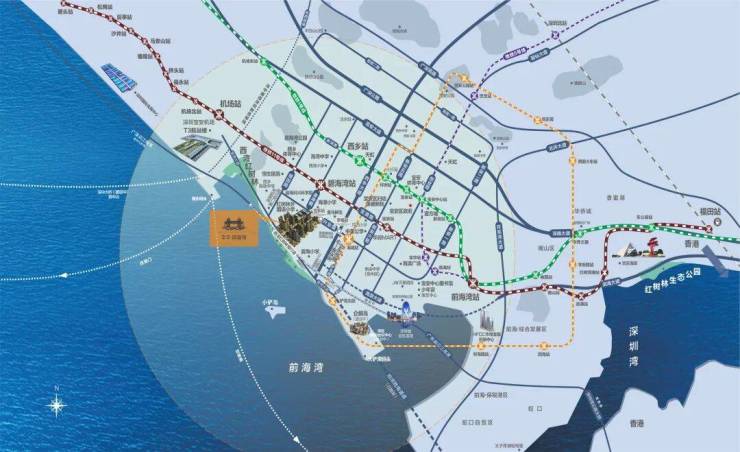 前海扩容后,项目位处「大铲湾-宝中-前海桂湾」湾区新核内,占位前海真中心C位。「空港枢纽新城」&「大铲湾-宝中-前海桂湾」交汇于此,享多规划鲁加发展未来价值。