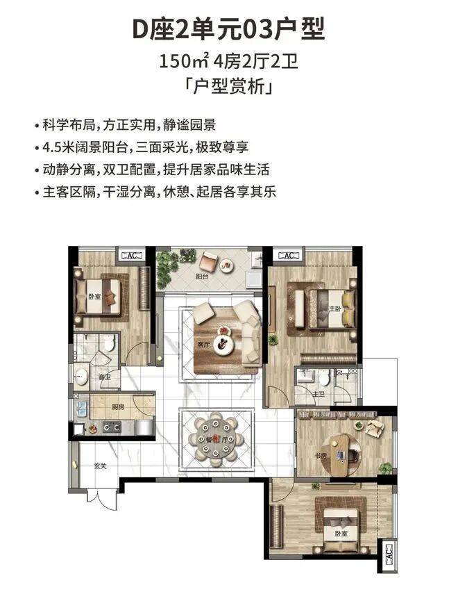 提供121-203平米的阔绰户型,绝版无敌景观大阳台,满足不同家庭的居住需求。
