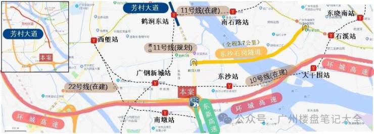 11号线鹤洞东站(在建):贯穿荔湾、海珠、天河、越秀中心四区,直达琶洲和广州东站;