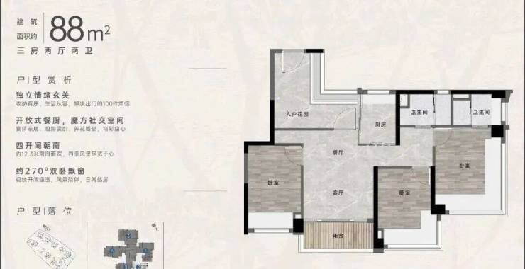 最抢手的88㎡三房,四开间全南向+270°双卧飘窗,采光通风绝了
