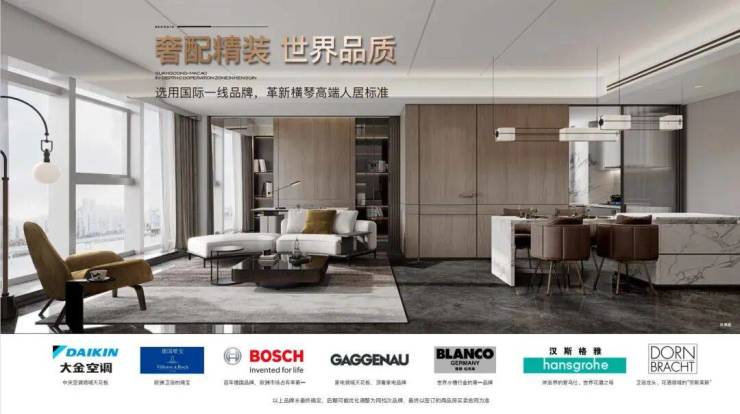 ▷交付标准:精装,选用国际一线品牌如大金、博世、嘉格纳、美诺、当代、铂浪高、汉斯格雅等