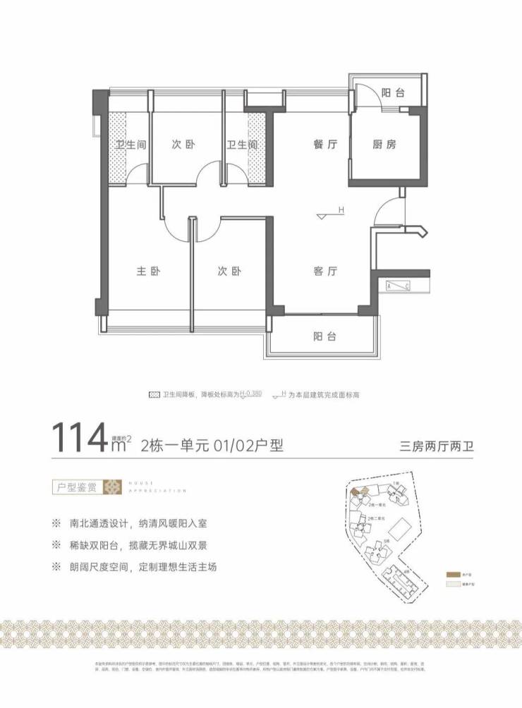 →归心生活:建面约110-133㎡城山双景,南北通透、稀缺双阳台,全系品牌精装,非凡品质臻享