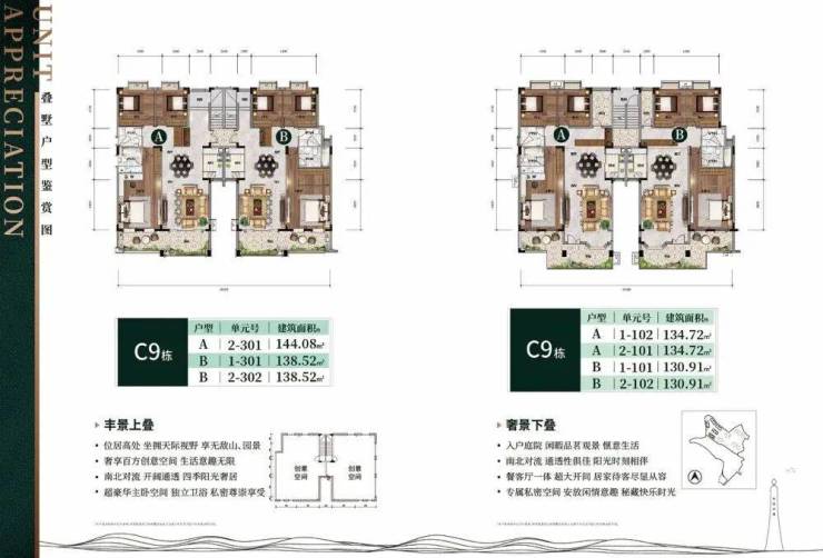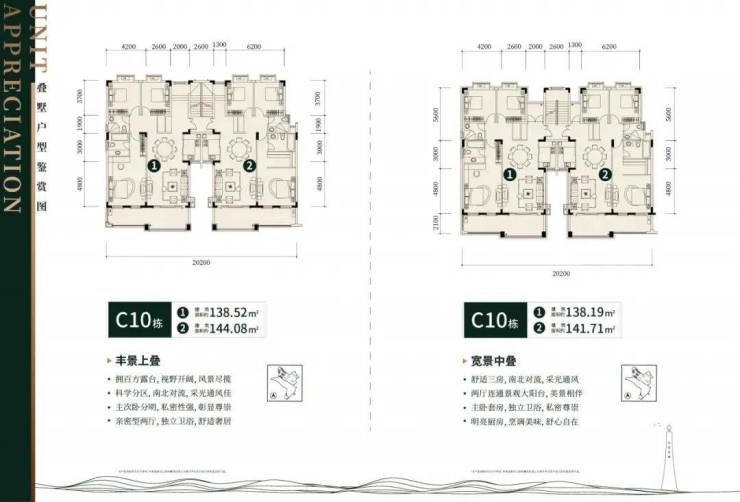 在小区里,叠墅产品呈一字排开,层层递进,通过南北坡差,使得上一排跟下一排叠墅完全不会互相遮挡视野。