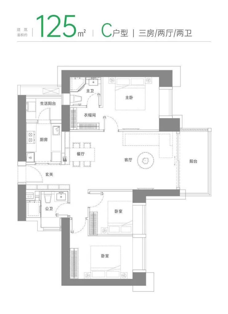 奢享主卧,生活阳台、衣帽间、私人卫浴,独享非凡领地