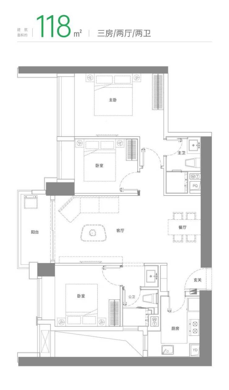 卧室标配飘窗,引入丰沛阳光,全家尽情舒展餐客一体贯通阳台,打造舒适、宽敞的欢聚天地奢享主卧,独享衣帽间、私人卫浴,自我非凡领地
