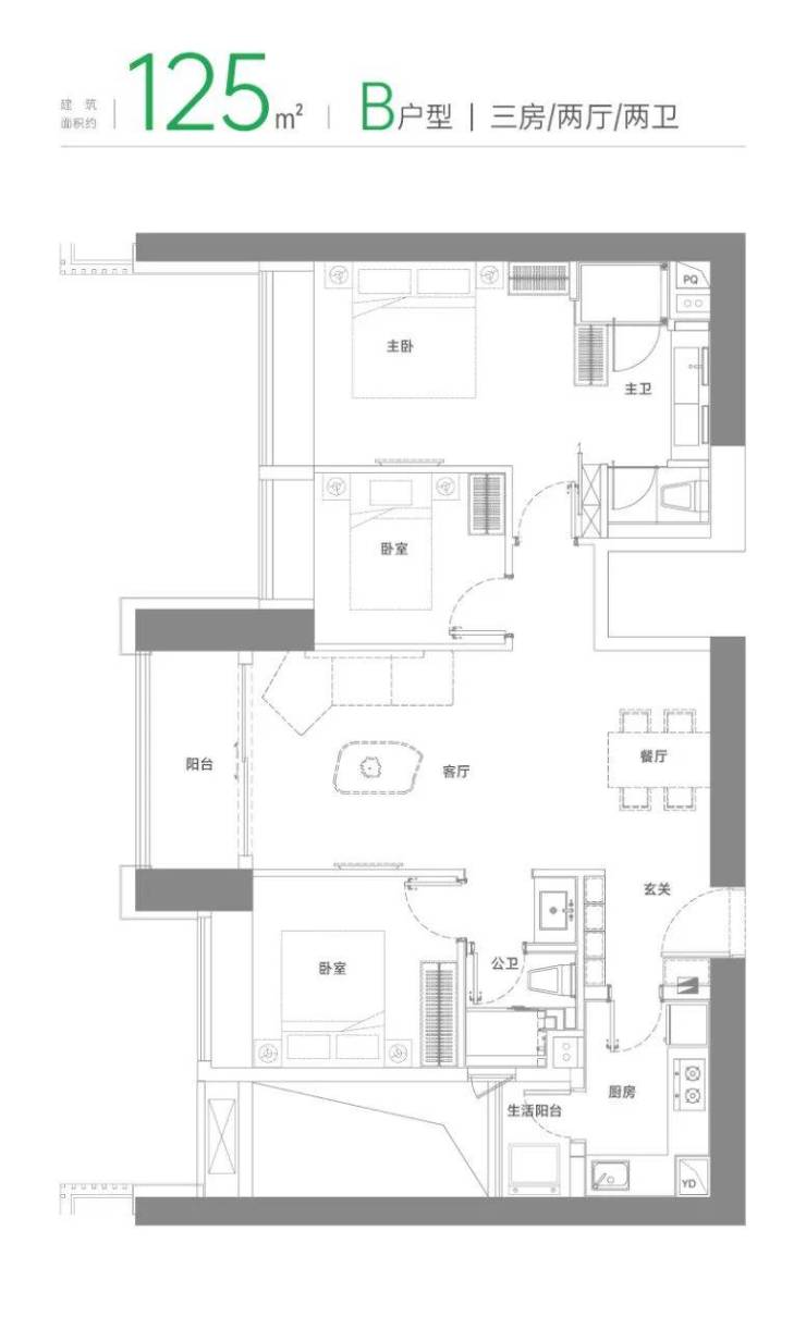 双阳台设计,厨房连通生活阳台,延展更多空间,随心收纳