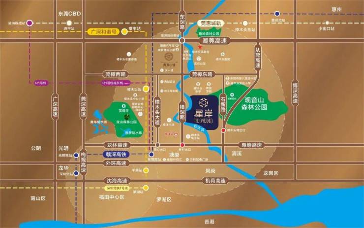 就如同台北阳明山距离台北最繁华的市中心不过十几分钟车程、比弗利山庄对望曼哈顿金融区一样,THE EMERALD星岸周边的轨道交通不断建设发展。一线直达深圳。