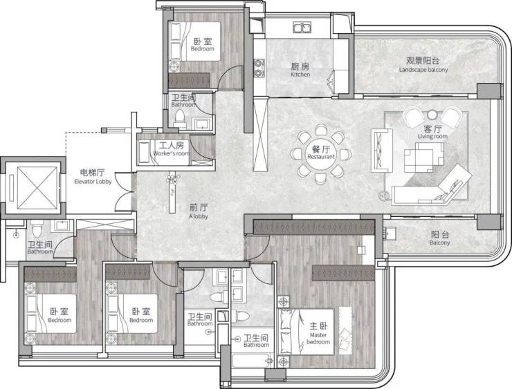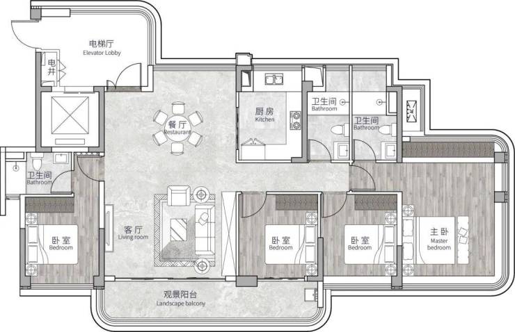 阅境(建面约140m²四房两厅三卫)