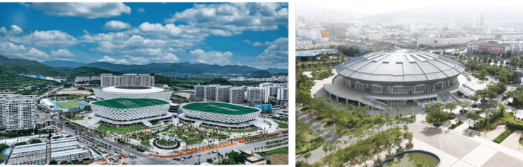 三亚技师学院体育中心占地183亩,是由三亚市政府投入2.8亿元兴建的标志性建筑。中心由体育场、体育馆和游泳馆三个场馆组成,总建筑面积3.4万㎡,由学校管理,对公众开放。三亚白鹭体育中心是三亚唯一的甲级国际大型综合体育场馆集群,总占地面积427.74亩,总建筑面积约32.4万㎡。配有白鹭体育场、白鹭体育馆、白鹭游泳馆(恒温泳池)、热身训练场,融合顶级明星赛事承办、全民健身服务于一体,是三亚的文体旅新地标。
