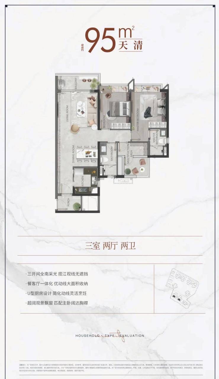 建面约95平3方2厅2卫