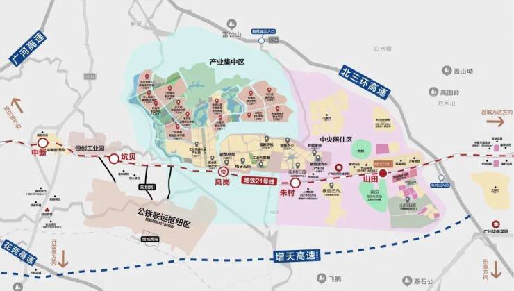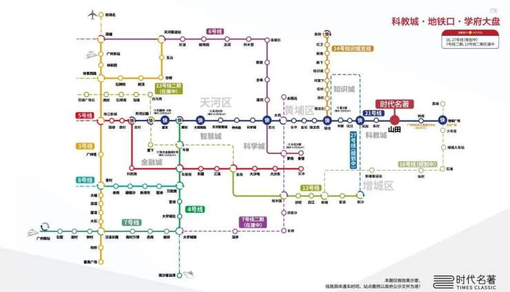交通便捷:距离地铁21号线山田站C口仅约29米,步行即可到达地铁站,快线3站可达黄埔、6站直达天河,方便快速通勤。同时,项目周边900米处有北三环高速口,自驾30分钟可到达天河,交通网络发达。