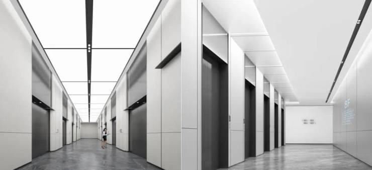 开敞式电梯厅设计,全天持续采光通风,安心健康绿色办公,会呼吸的电梯厅!