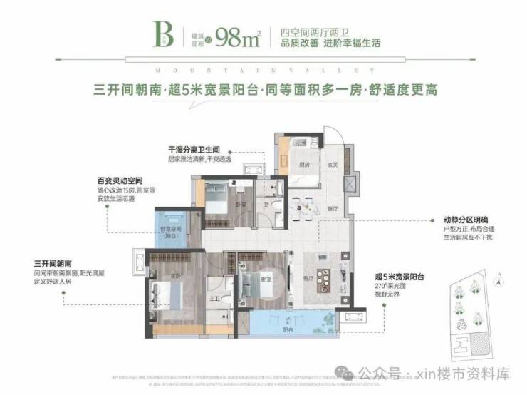 区域内唯一98㎡4房户型,精英阶层置业首选