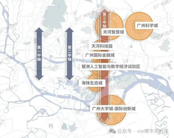 广州第三中轴由地铁4号线贯穿,串联【金融城CBD-琶洲CBD-大学城-国际创新城-亚运板块-南沙自贸港】