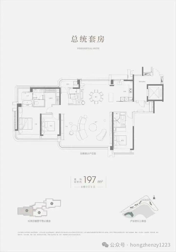 首推T3栋中,有一层两户的303m2户型,大三房或大四房可选;也有定制的605m2,一层一户;更有两套1200m2的顶楼复式。T5栋的户型为197m2,三梯三户,也做到了南北对流,北向望万博中心景,南向看花园。