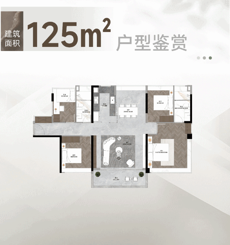 约125平四空间,更堪称改善家庭一步到位的最优选。