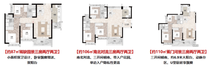 户型特色:刚需到改善全覆盖,江景资源加持