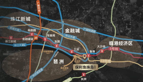 保利鱼珠岛位于黄埔鱼珠岛尖,地处珠江前航道与支流交汇处,是市中心罕见的临江半岛。交通维度空前丰富:地铁13号线鱼珠站步行可达,11号线已实现鱼珠与琶洲、金融城“一站互联”;新白广城际年内开通,进一步强化湾区通勤效率;更值得期待的是,琶洲—鱼珠隧道、琶洲—珠江新城隧道建成后,将彻底打破“一江之隔”的物理屏障。