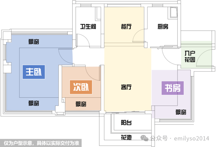 4开间朝南、南北对流、入户花园、主卧270°环幕飘窗
