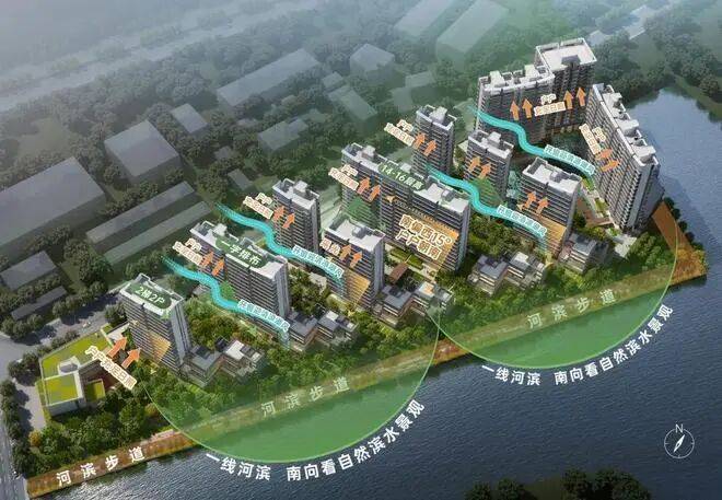 :由16栋14-16层的小高层住宅和5栋临河的4层叠墅组成