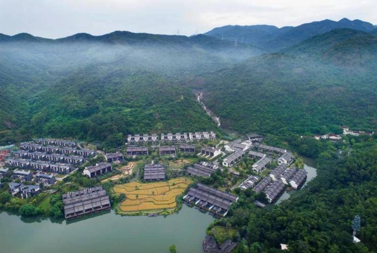 四期云谷·温泉叠墅;中海汤泉·云谷 组团位于项目整体地块的西侧位置,3期洋房鸣溪组团以北,让峰退谷,依山就势,形成外观山、内赏湖、户户景异的创新建筑格局。因所处地块西高东低,北高南低,形成天然谷地;依傍罗浮山余脉,云雾缭绕俨然仙境而获名云谷。