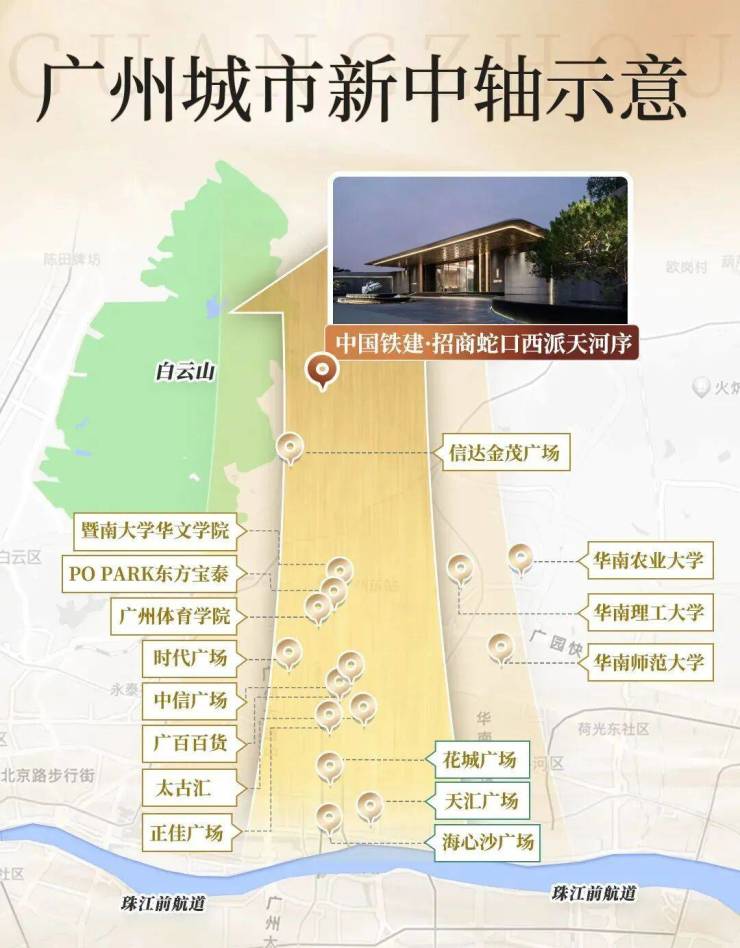 首先,这里是天河中轴贯穿的核心区域,汇聚了全市顶尖的商业、文化、金融资源。然而,过去十年间,天河中轴段仅出让了极少数宅地,西派天河序正是立于此的“藏品”。其次,项目所在的地块原为梅花铝厂,经过多轮竞价后由中铁建竞得,楼面价创下天河区历史第二高价,足见其土地价值的珍贵。在这里,你既能享受城市的繁华,又能拥有不可复制的自然资源。