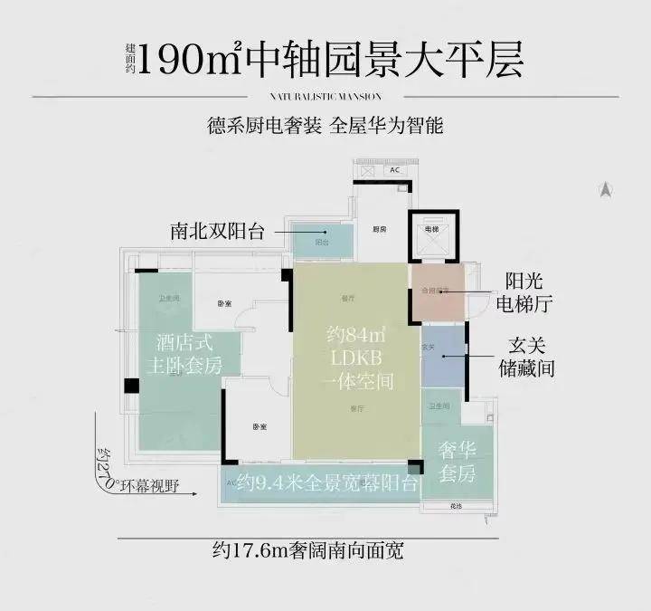 户型三开间朝南,为了获取更大面宽视野,项目还将全屋的窗地比做到38%。