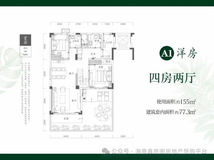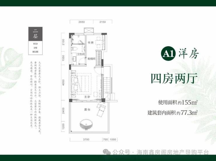 二期在售户型1:跃层洋房77.3㎡三房一厅