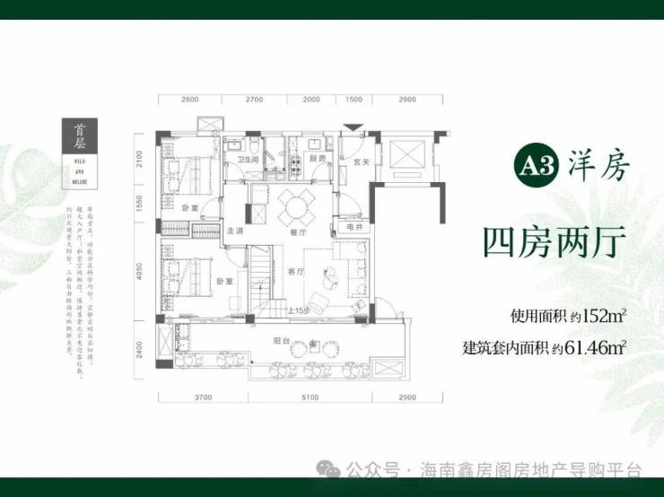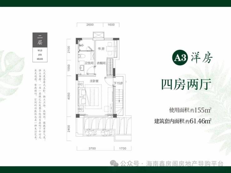二期在售户型3:跃层洋房61.46㎡三房一厅