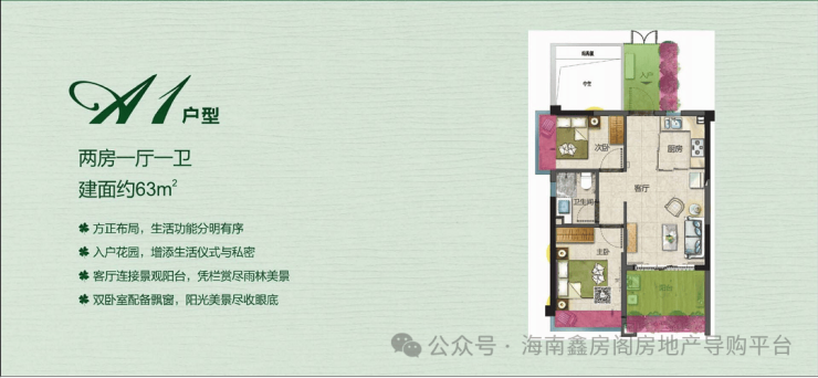 三期在售户型2:高层住宅63㎡两房一厅
