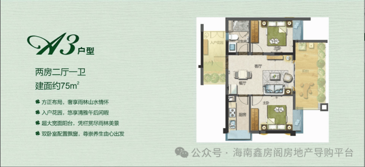 三期在售户型3:高层住宅75㎡两房一厅